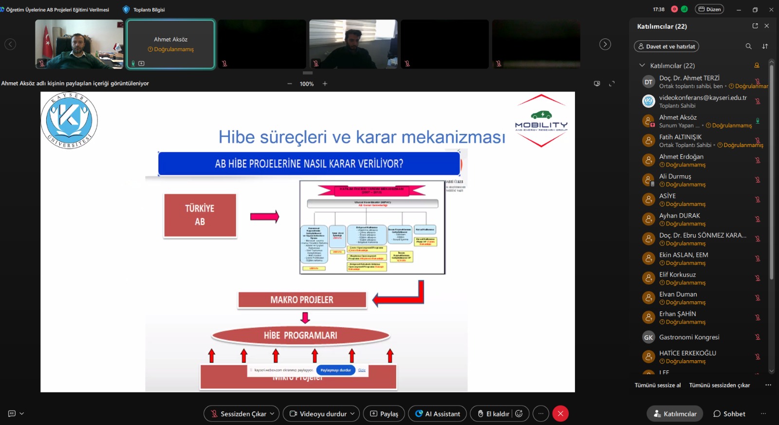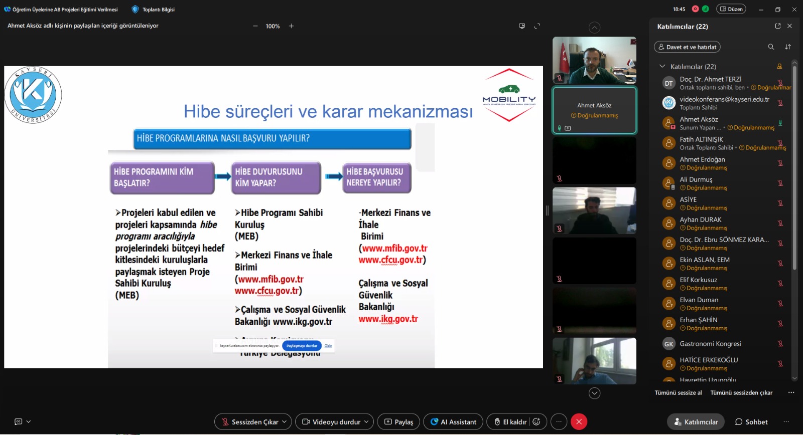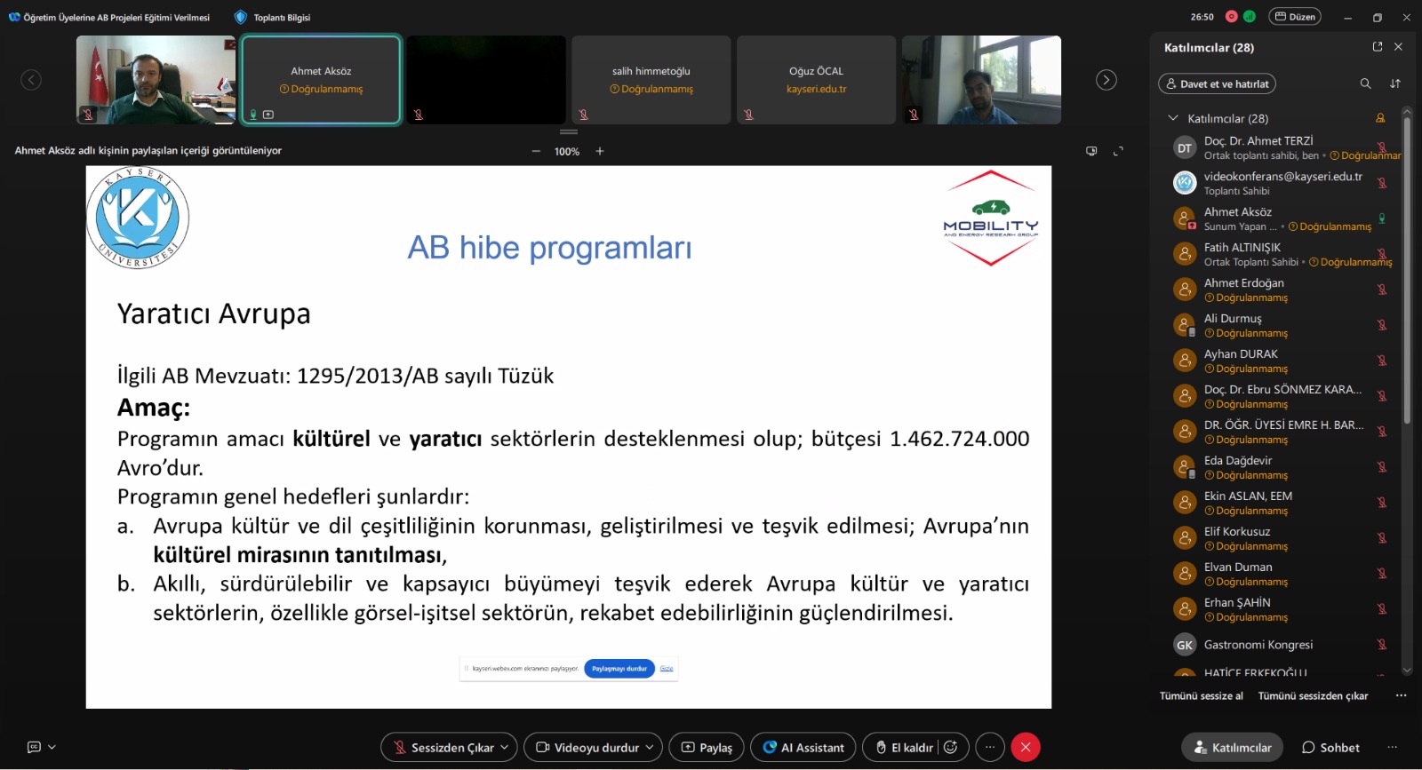 As part of the Training of Trainers program, an online “EU Project Training” session was delivered by Assoc. Prof. Ahmet AKSÖZ for faculty members of our Graduate School’s academic departments on Monday, 13 October 2025, at 14:00.