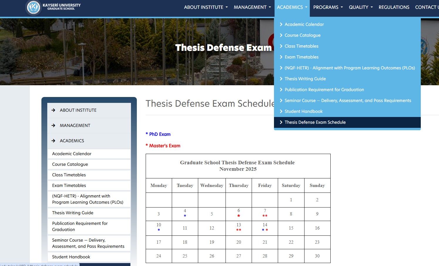 In accordance with the decision taken at the Unit Advisory Board meeting of our Institute, the "Graduate Education Institute Thesis Defense Exam Schedule" has been published on our Institute's website under the Education-Training heading in order to ensure traceability for students who will take the Thesis Defense Exam.